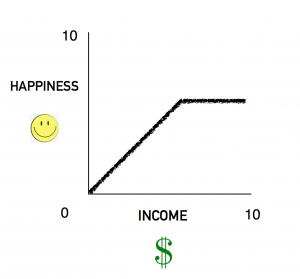 According to the internet, Princeton University conducted a study correlating income to happiness. They discovered that happiness increases with income, up to the point that a person can live comfortably, and not worry about their basic survival needs being met. After that, further increases in income do not correlate to further increases in happiness.